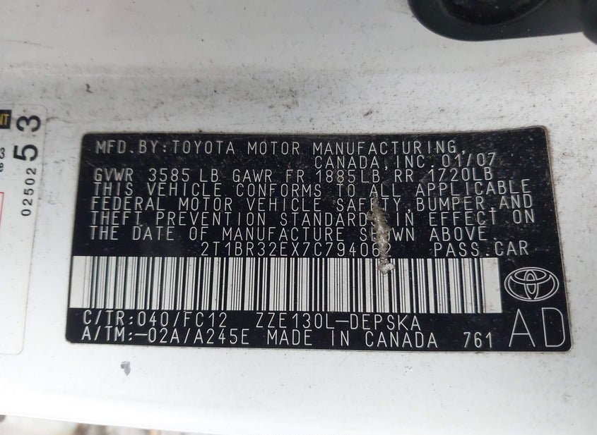 - VIN: 2T1BR32EX7C794062