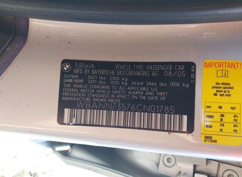- VIN: WBANN73576CN01785