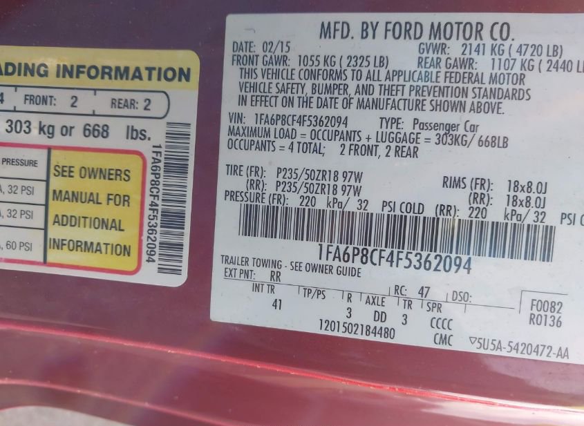 - VIN: 1FA6P8CF4F5362094