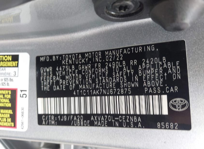 - VIN: 4T1C11AK7NU672875