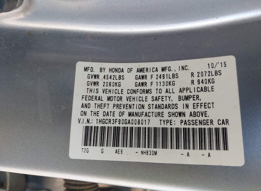 - VIN: 1HGCR3F90GA008017