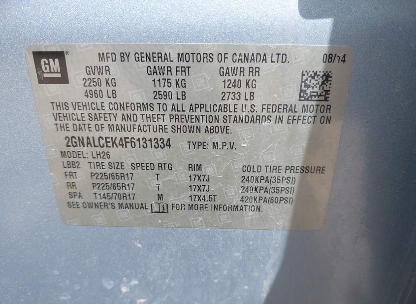 - VIN: 2GNALCEK4F6131334