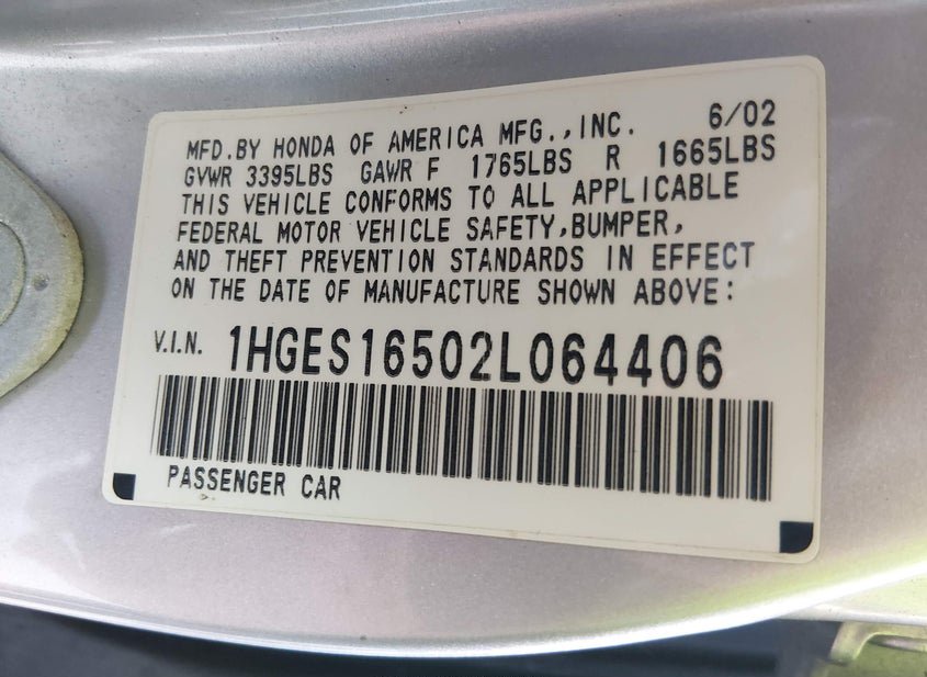 - VIN: 1HGES16502L064406
