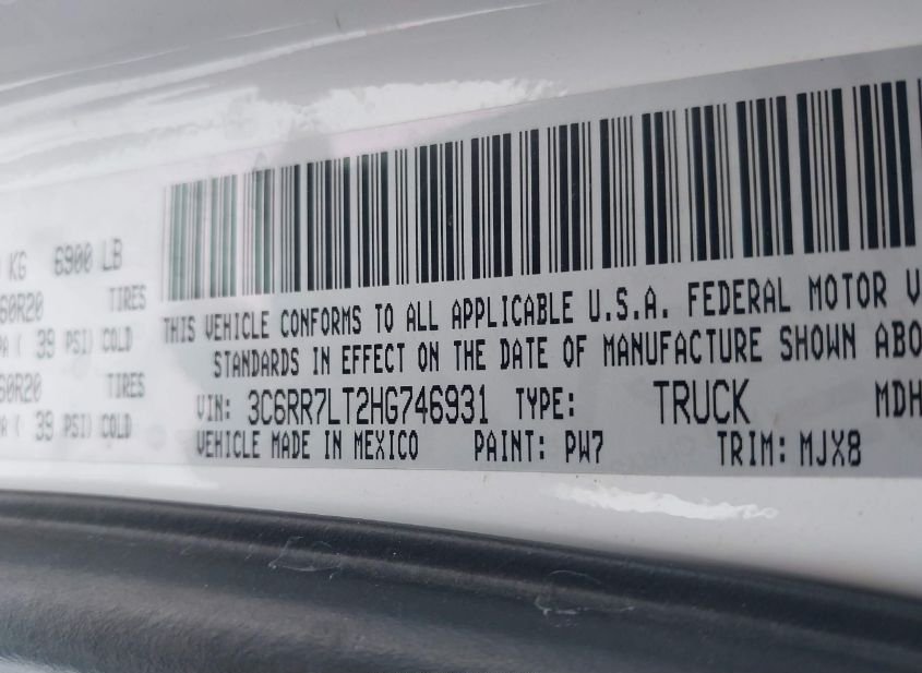 - VIN: 3C6RR7LT2HG746931