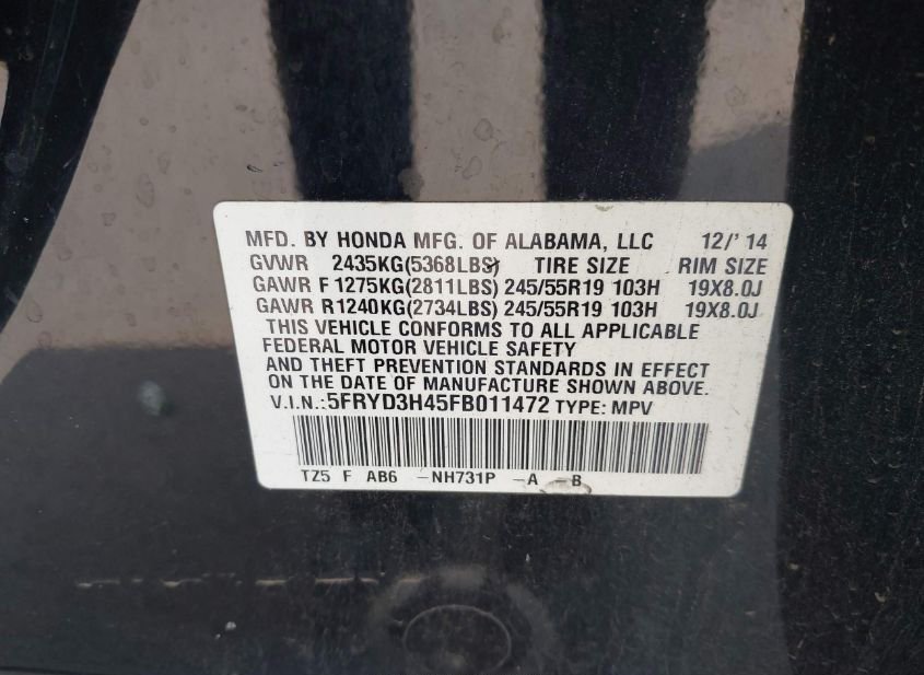 - VIN: 5FRYD3H45FB011472