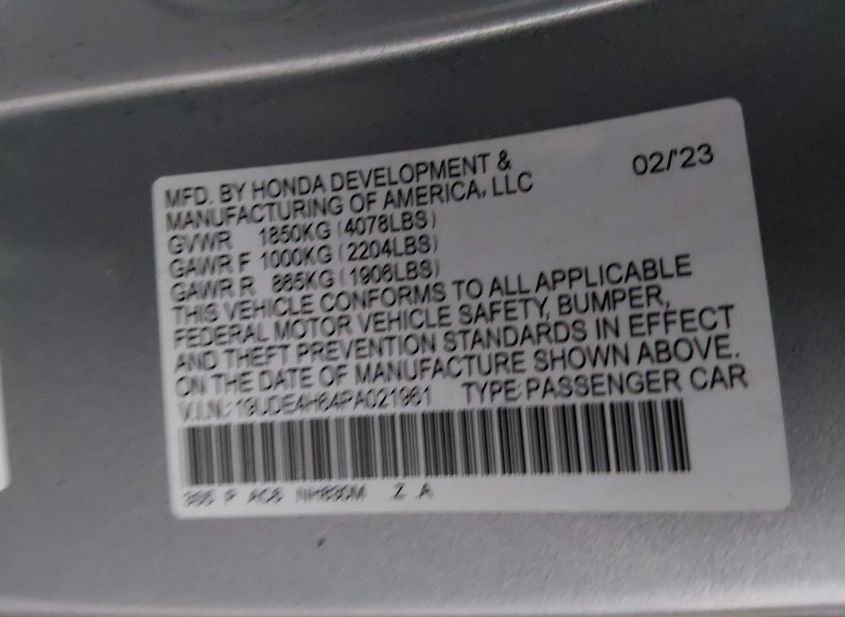 - VIN: 19UDE4H64PA021961