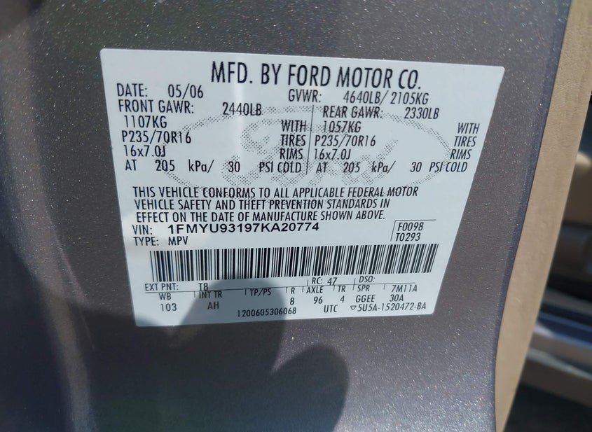 - VIN: 1FMYU93197KA20774