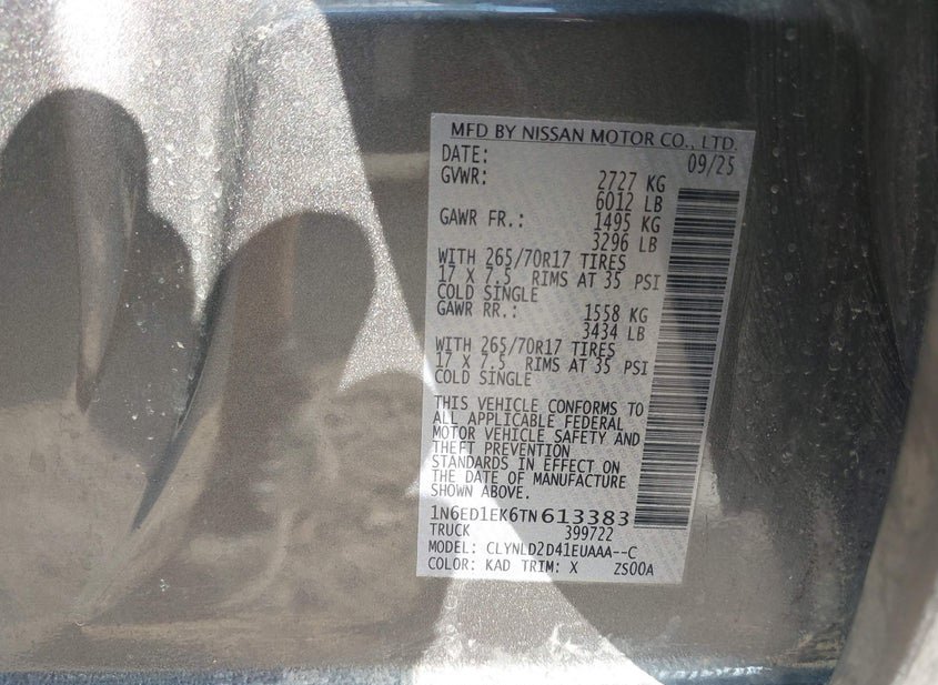 - VIN: 1N6ED1EK6TN613383