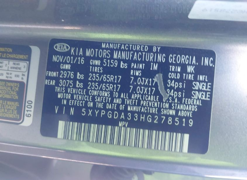 - VIN: 5XYPGDA33HG278519
