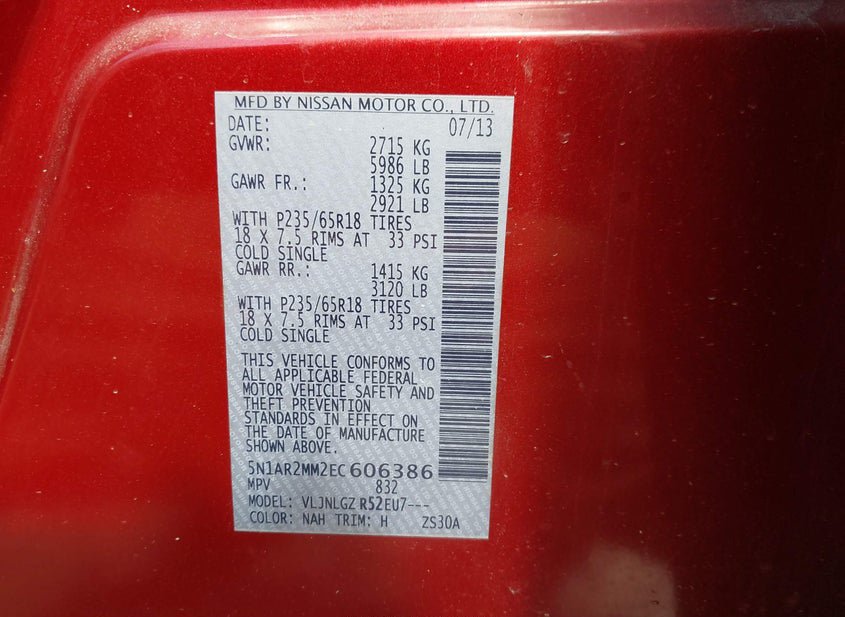 - VIN: 5N1AR2MM2EC606386