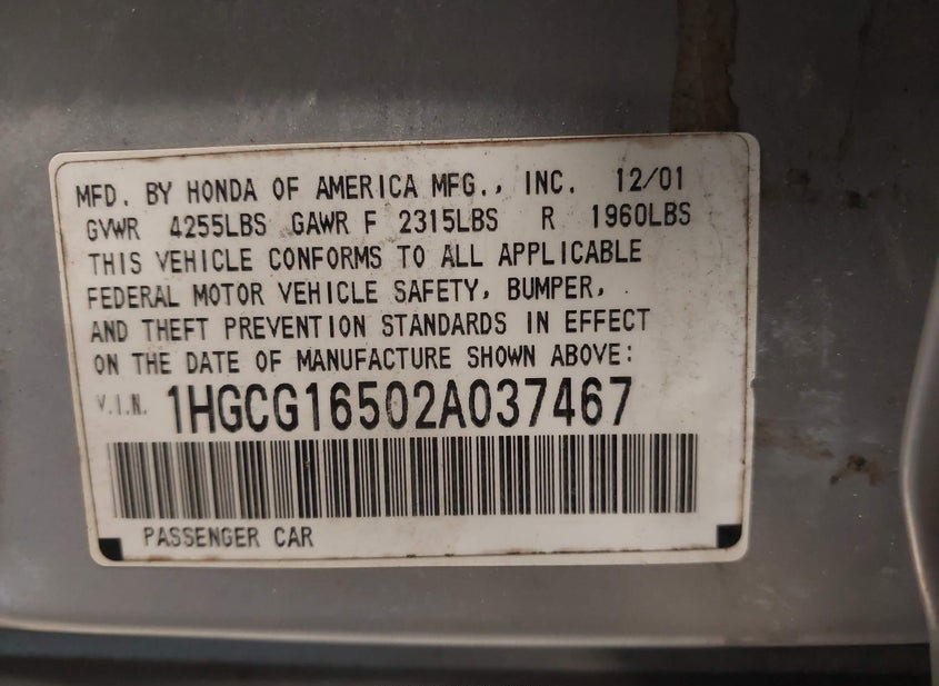 - VIN: 1HGCG16502A037467