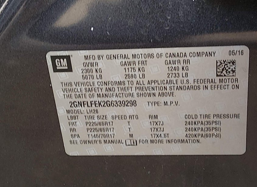 - VIN: 2GNFLFEK2G6339298