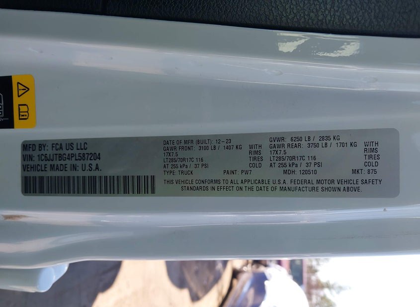 - VIN: 1C6JJTBG4PL587204