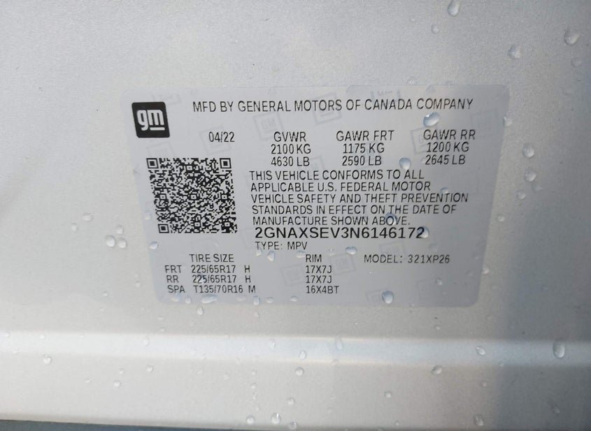 - VIN: 2GNAXSEV3N6146172