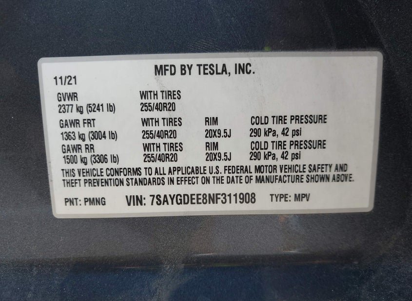 - VIN: 7SAYGDEE8NF311908