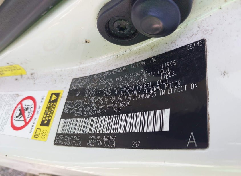 - VIN: 5TDZK3EH4DS119450
