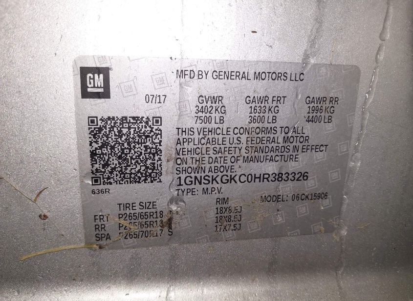 - VIN: 1GNSKGKC0HR383326