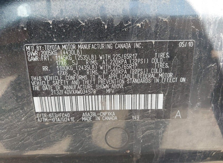 - VIN: 2T3ZF4DVXAW034978