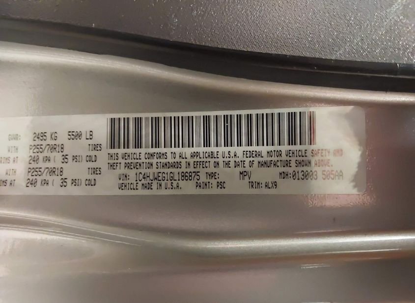 - VIN: 1C4HJWEG1GL186875
