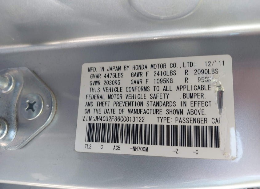 - VIN: JH4CU2F86CC013122