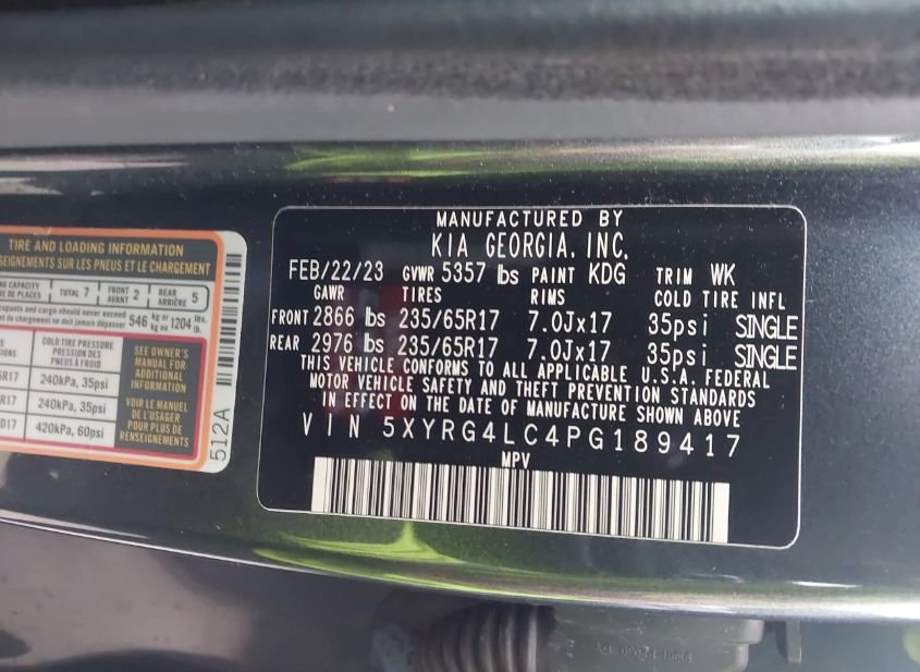 - VIN: 5XYRG4LC4PG189417