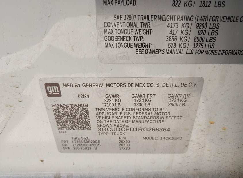 - VIN: 3GCUDCED1RG266364