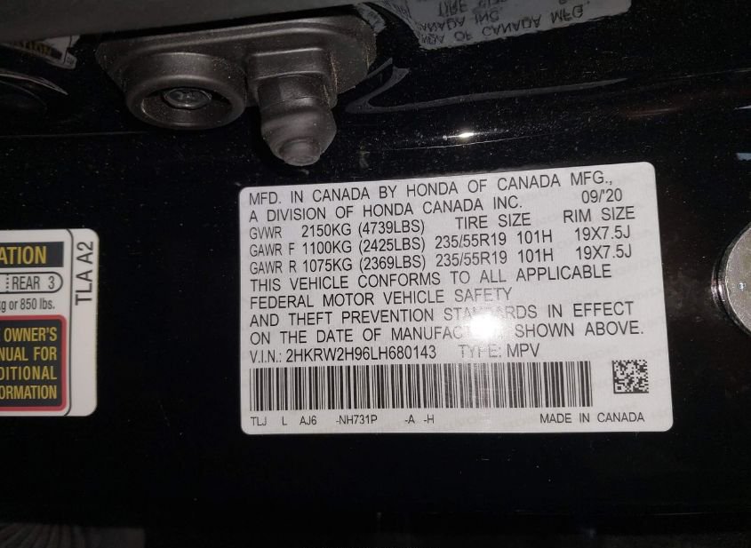 - VIN: 2HKRW2H96LH680143