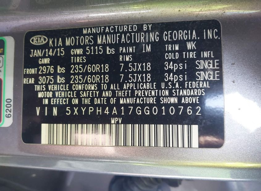 - VIN: 5XYPH4A17GG010762