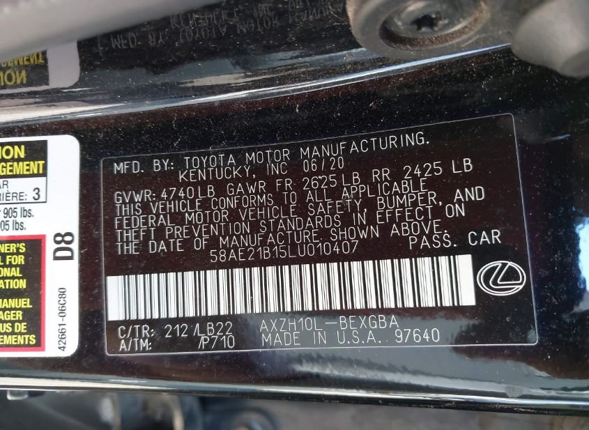 - VIN: 58AE21B15LU010407