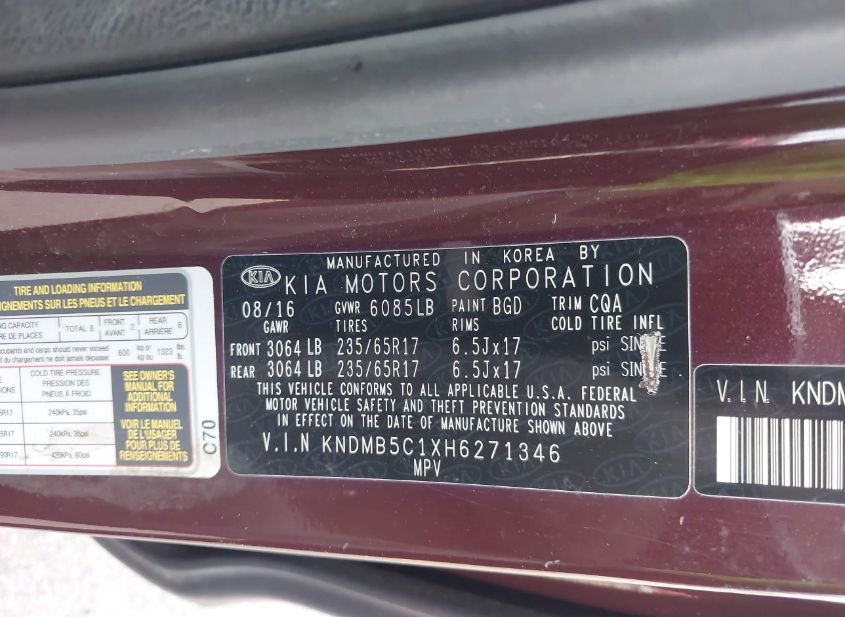 - VIN: KNDMB5C1XH6271346