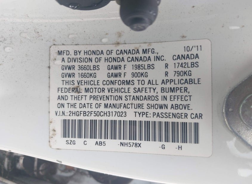 - VIN: 2HGFB2F50CH317023