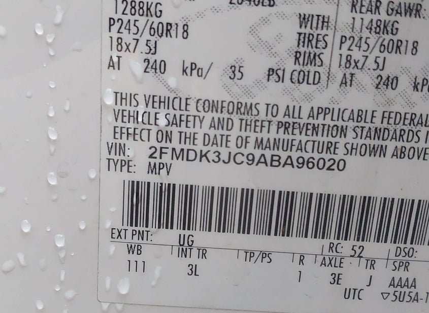 - VIN: 2FMDK3JC9ABA96020