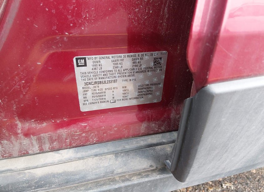 - VIN: 3GNCJRSB9JL233187