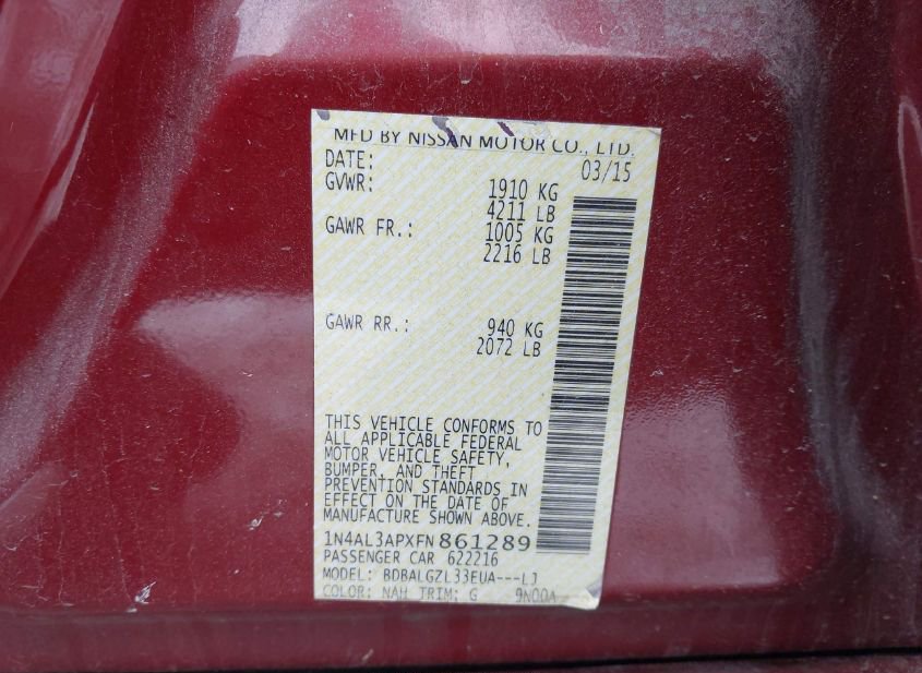 - Название лота: 2015 NISSAN ALTIMA 2.5 S