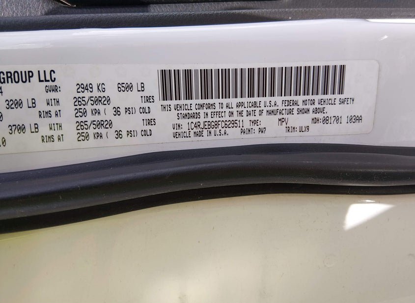 - VIN: 1C4RJEBG8FC629511