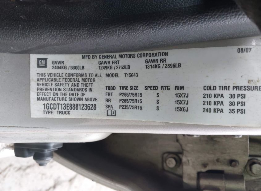 - VIN: 1GCDT13E888123628