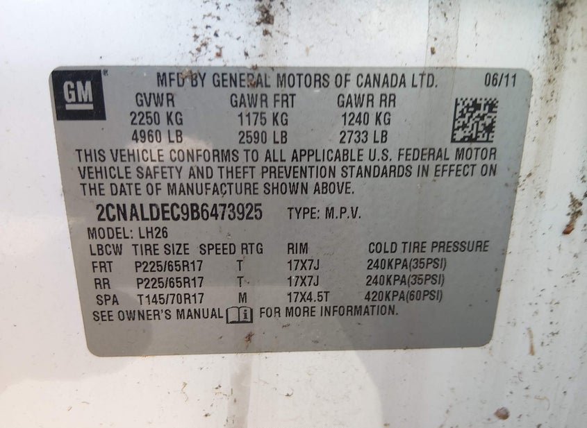 - VIN: 2CNALDEC9B6473925