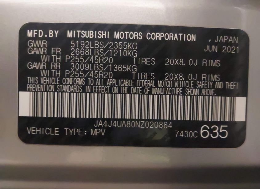 - VIN: JA4J4UA80NZ020864