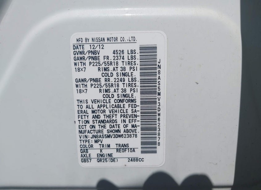 - VIN: JN8AS5MV3DW623878