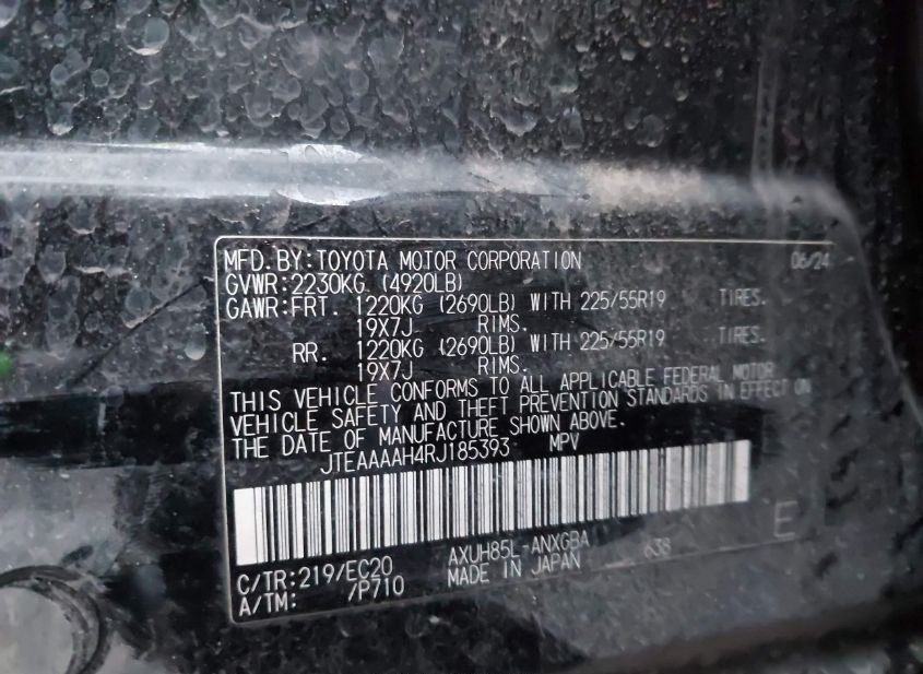 - VIN: JTEAAAAH4RJ185393