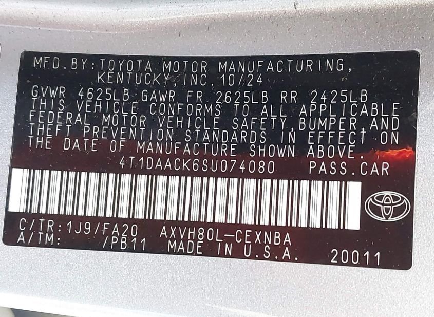- VIN: 4T1DAACK6SU074080