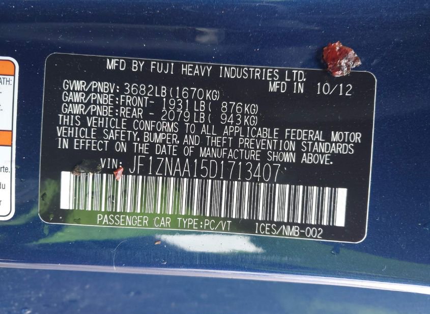 - VIN: JF1ZNAA15D1713407