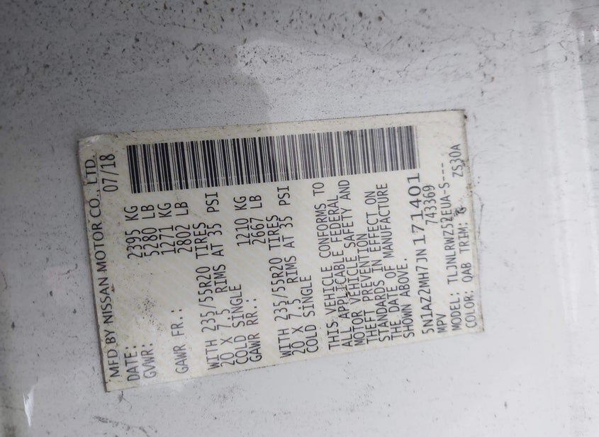 - VIN: 5N1AZ2MH7JN171401