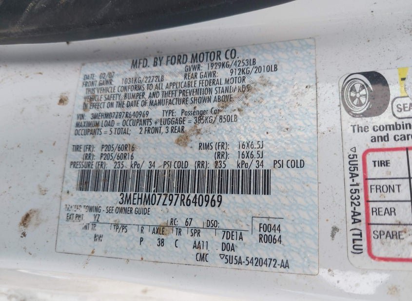 - Название лота: 2007 Mercury Milan 2.3L