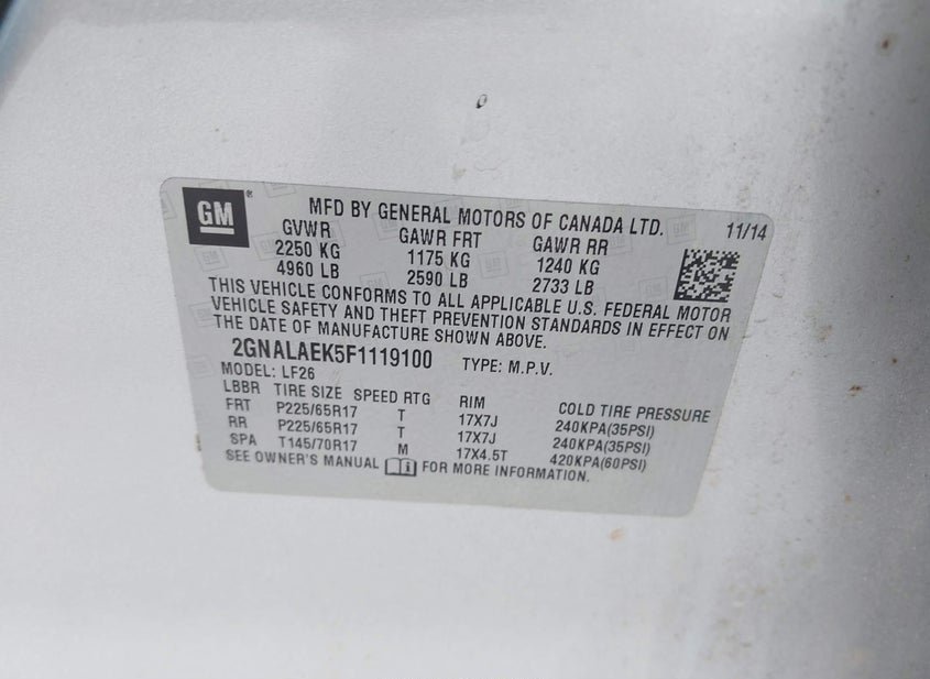 - VIN: 2GNALAEK5F1119100
