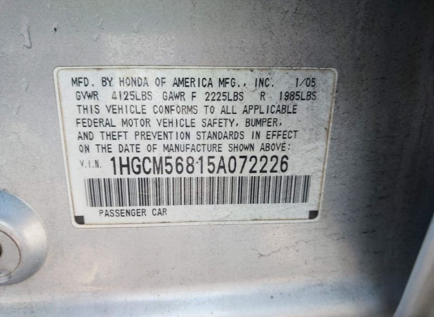 - VIN: 1HGCM56815A072226