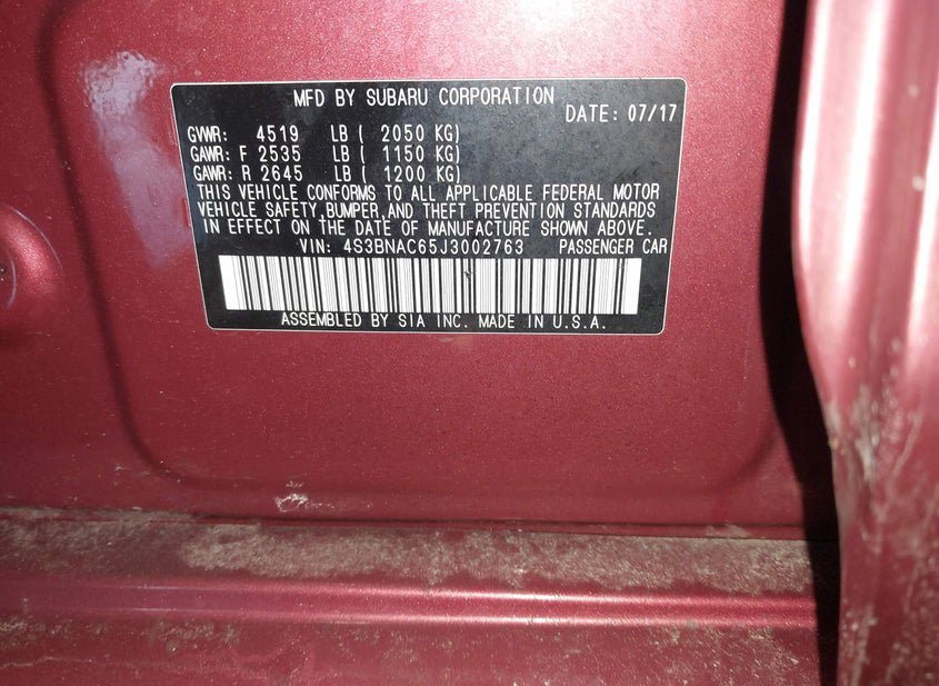 - VIN: 4S3BNAC65J3002763