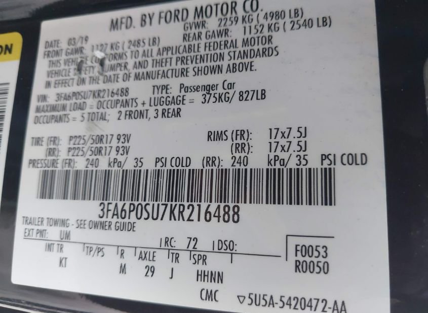- VIN: 3FA6P0SU7KR216488