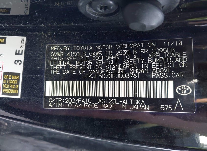 - VIN: JTKJF5C70FJ003761