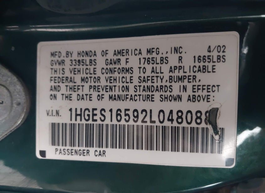 - VIN: 1HGES16592L048088